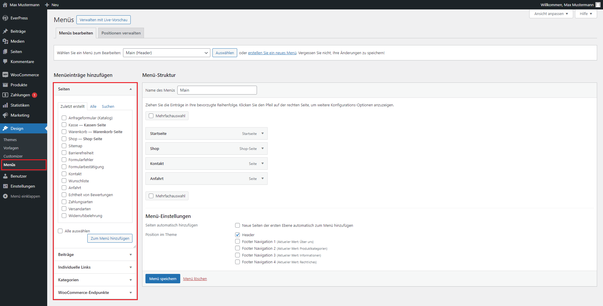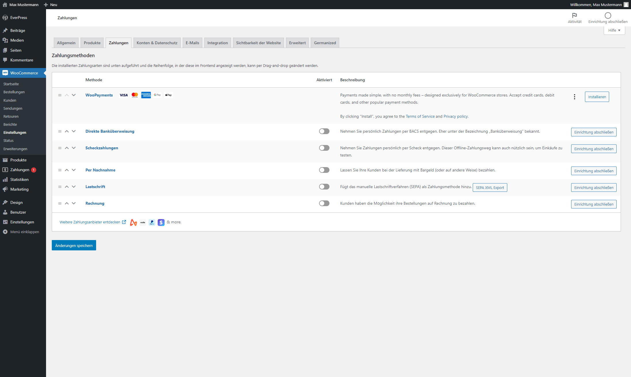 Nachdem alle Informationen eingetragen wurde, klicken Sie den „Änderungen speichern“ Button