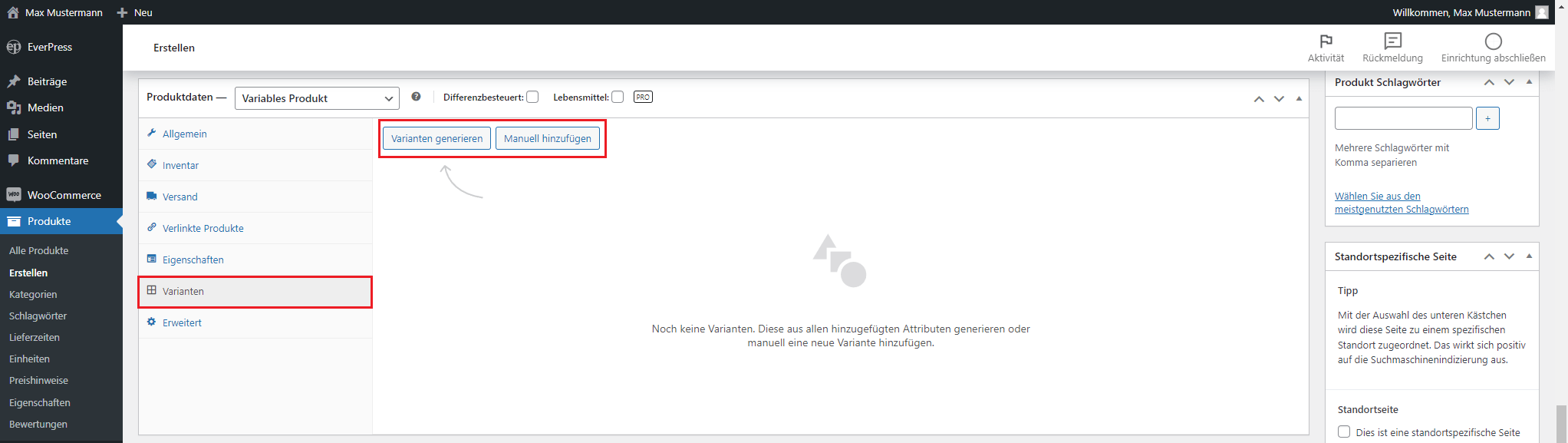 Ein variables Produkt bietet die Möglichkeit, verschiedene Optionen wie Größen, Farben oder Materialien für ein Produkt anzubieten. Dies ist ideal für Produkte, bei denen Kunden aus mehreren Varianten wählen können, beispielsweise Kleidung oder Elektronik. Diese Anleitung erklärt detailliert, wie Sie ein variables Produkt anlegen und konfigurieren.